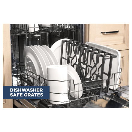 These cooktop grates can be cleaned one of two ways – either in the dishwasher, or on the bottom of a self-clean oven