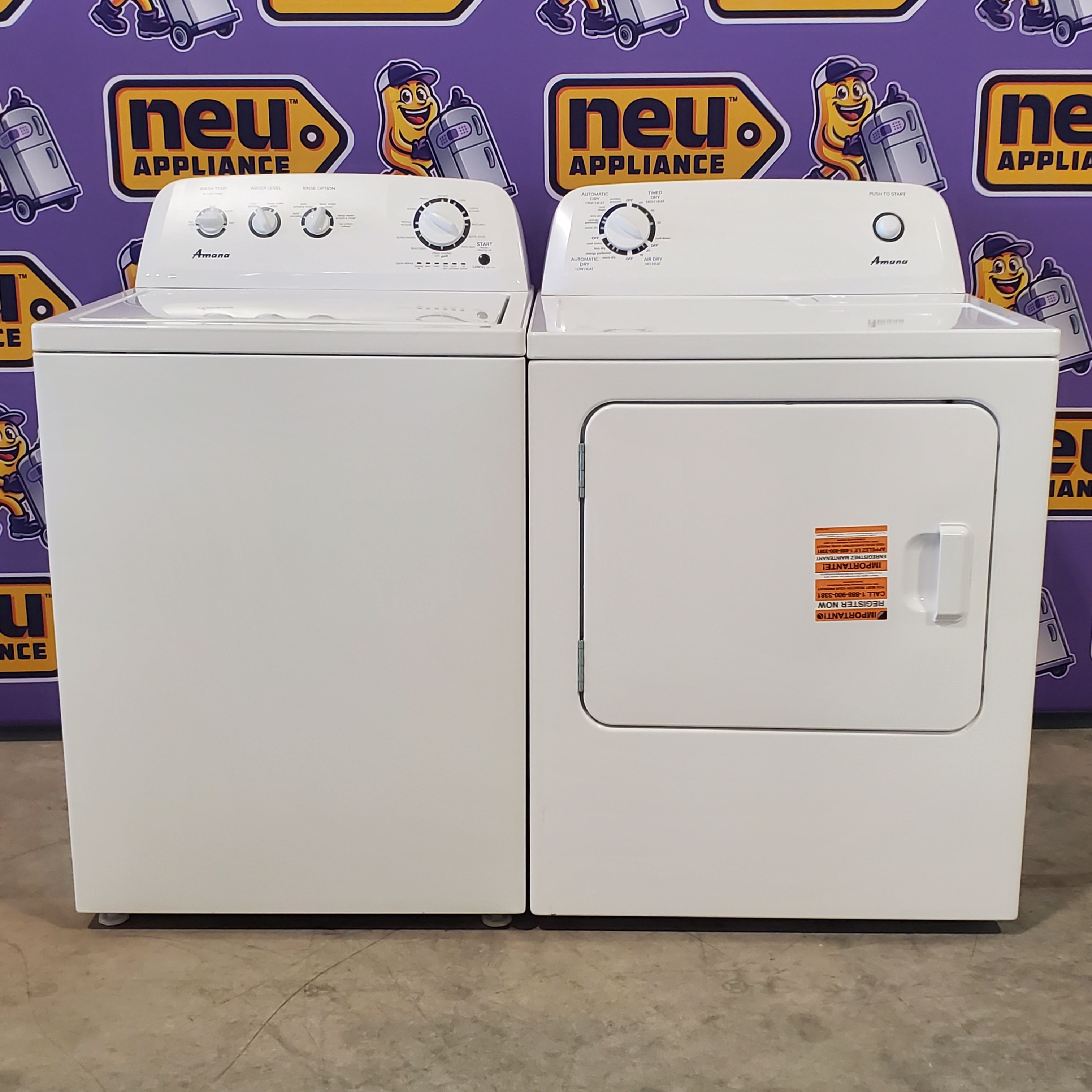 Amana 3.8 cu. ft. Top Load Washing Machine with Deep Water Wash Option NTW4519JW and Amana 6.5 cu. ft. Electric Dryer with Automatic Cycles NED4655EW - Scratch & Dent - Minor